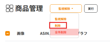 複数の商品の監視設定を一度に変更する場合、リストの最左部にあるチェックボタンを活用することで、一括で監視の解除を行うことができます。