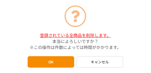登録商品をすべて削除したい場合は「全件削除」を実行することで、一括ですべての商品を削除できます。